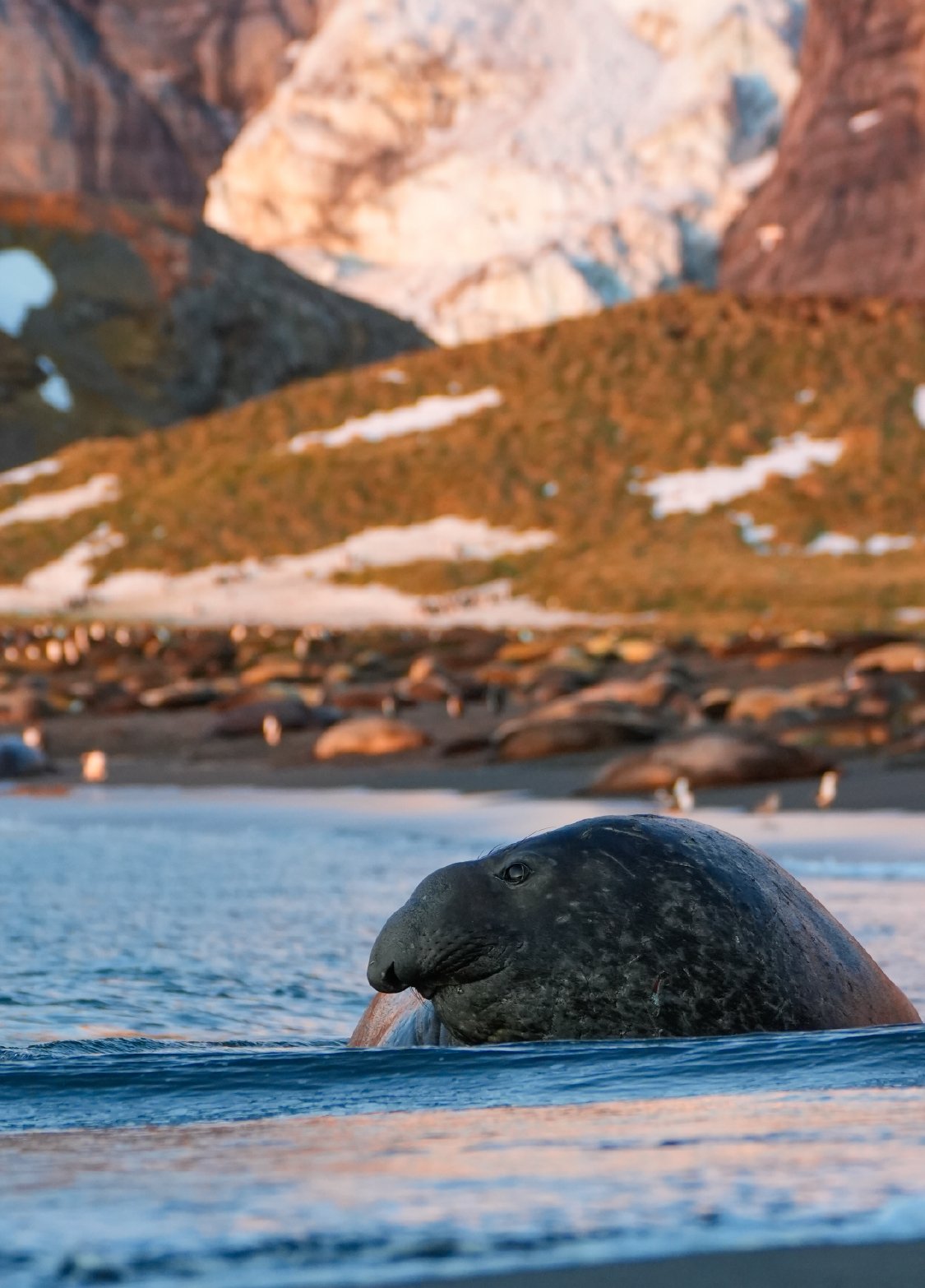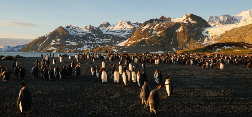 As you arrive to Saint Andrews Bay, one of the largest King Penguin colonies in the word with about 400,000 birds, you are greeted by a cacophony of sights and sounds. The beach is packed with Elephant seals and fur seals, with wandering albatross careening overhead. As far as the eye can see, there are King Penguins going about their day. The backdrop provides a dramatic contrast: green hills and snow-covered mountains dotted by glaciers. This is the real-life Jurassic Park.