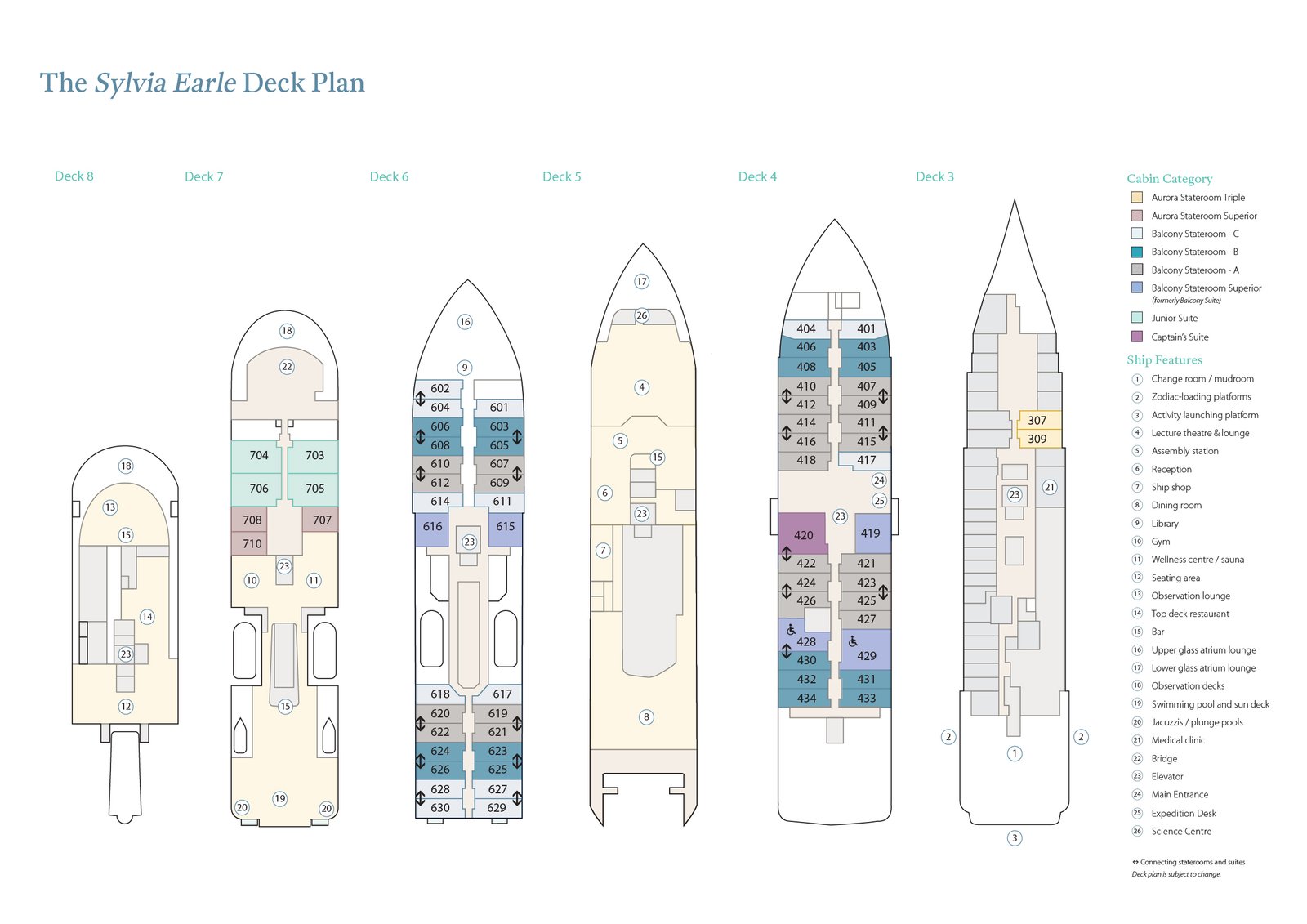 Captain’s Suite (46.3 sqm): Located on Deck 4.