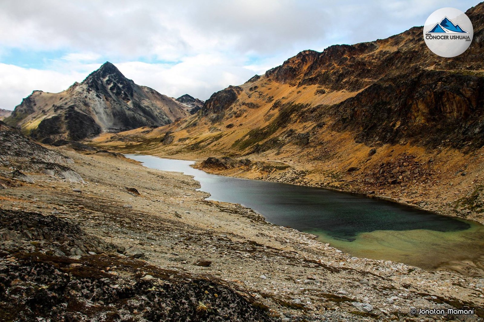 The trailhead to get to Lagunas Gemelas is located about 800 meters before arriving to Paso Garibaldi viewpoint (*departing from Ushuaia). There is a small “waterfall” on the right side of the route* where most people park. From there you have to walk about 100m (in direction to Ushuaia) to find a small sign that introduces you to this trek.