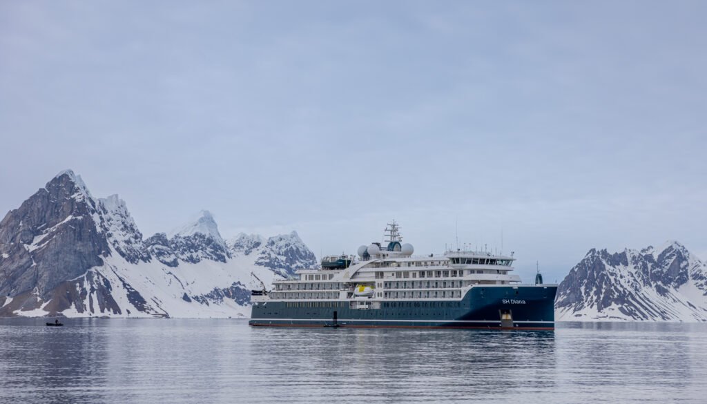 The PC 6 ice-class vessel is fitted with extra-large stabilisers for exceptional passenger comfort, offers spacious 5-star accommodation, and the 125 m-long ship has been specially made to explore the most inspiring and inaccessible places on the planet. SH Diana shares unique design features with her sister ships – SH Minerva and SH Vega – and has a state-of-the-art gym, spa, panoramic sauna, club room, and swimming pool with poolside grill.